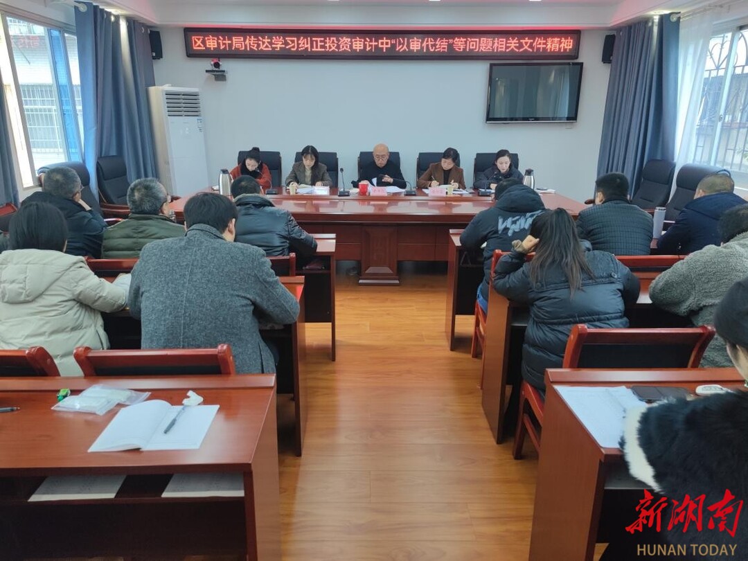 2024年3月6日,岳阳楼区审计局召开大会,传达学习上级审计机关投资审计相关文件精神,研究讨论政府投资审计转型升级工作,杜绝“以审代结”等问题。