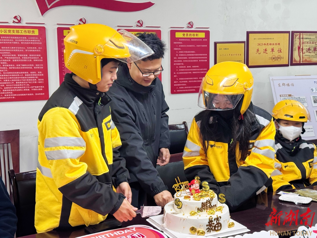 长房东郡物业给骑手庆祝生日