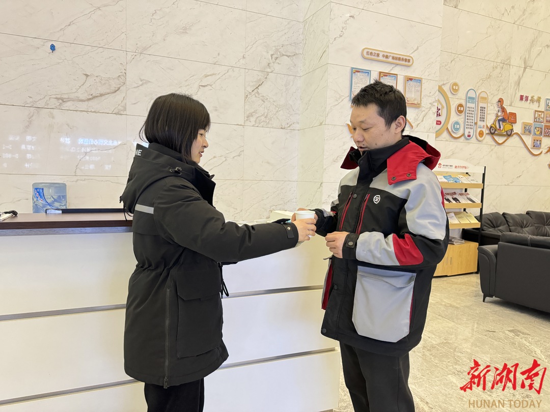 夏季送凉茶、冬季递姜茶,逢热送凉、遇寒加温。中盈广场驿站立足写字楼实际,利用大堂空间打造温暖“小家”,方便外卖员、快递员随时歇脚补给。