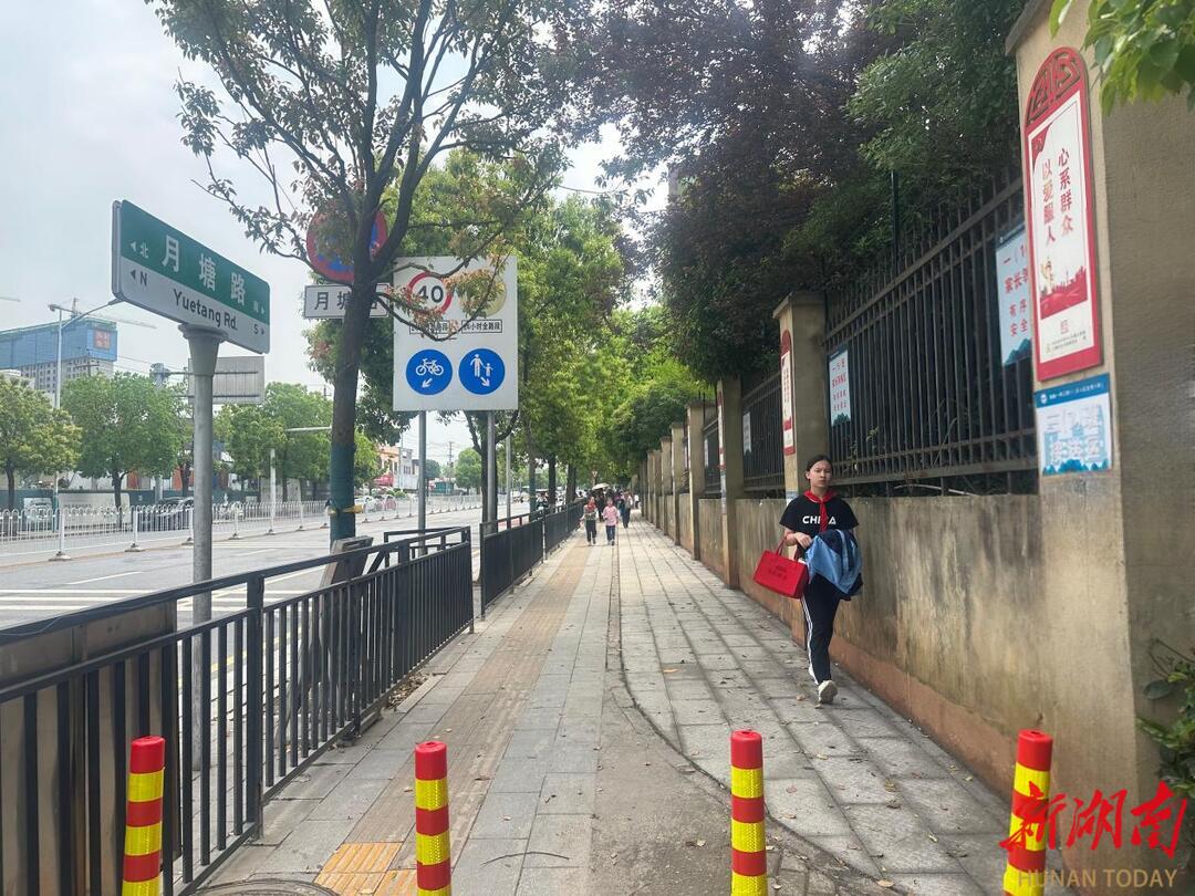 龙湾小学位于云塘社区辖区,师生规模超3000人。学校紧临月塘路,正校门两侧花坛总长120余米,人行道有效通行宽度仅1.47米。上下学高峰期人流高度集中,通行空间不足,部分学生被迫绕行至车行道与车辆混行,暗藏交通安全隐患。同时,花坛阻隔也影响紧急情况下的人员疏散。这一状况成为师生和家长的共同关切。