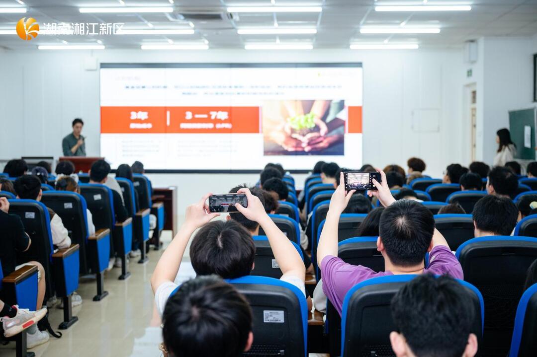 针对这些创业核心痛点,湖南麓山创星创业投资有限公司投资部部长李袁傲带来《投融资思维与创业项目孵化》主题分享。他凭借300余个创业项目投资的实战经验,拆解优质项目核心要素,还分步骤讲解了如何申请湖南省大学生创业投资基金。李袁傲说:“湖南正以 “七个一” 举措支持大学生创新创业,新区为创业提供了优质平台,同学们一定要抓住机遇,勇敢把创业想法付诸实践,积极向创业投资基金自荐优质项目。”