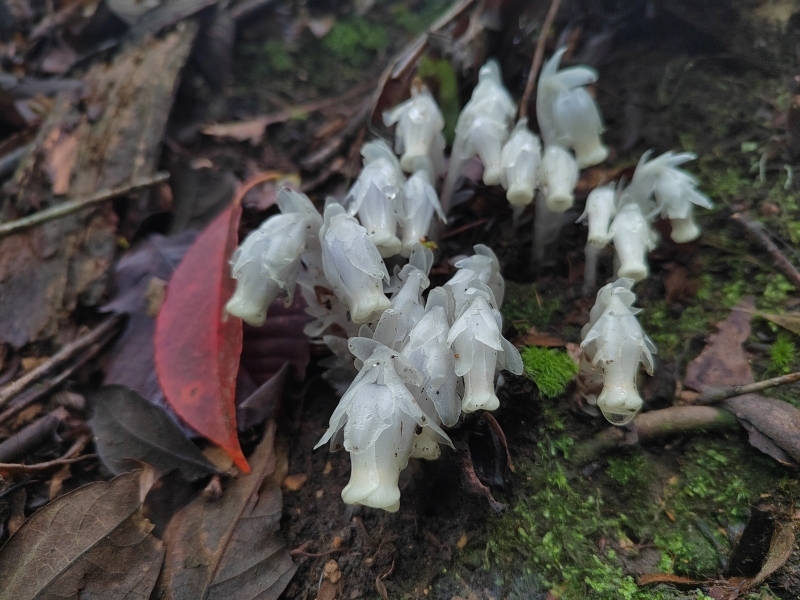 湖南日报·新湖南客户端4月9日讯(通讯员 孙芳华 龙景波 彭超 黄继成 记者 郑丹枚)近日,南山国家公园候选区黄桑片区工作人员在日常巡护中,于海拔约1100米的杜鹃林内,发现大片珍稀植物水晶兰,数量达400余株,如此大规模的成片分布极为罕见,也是黄桑保护区成立以来发现数量最多的一次。