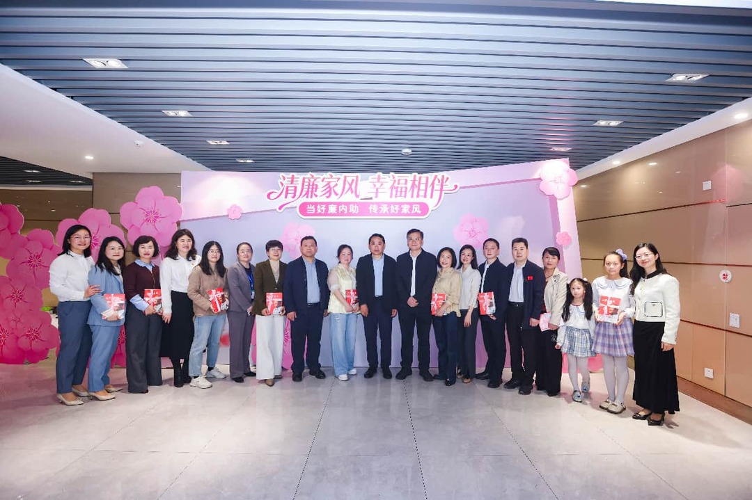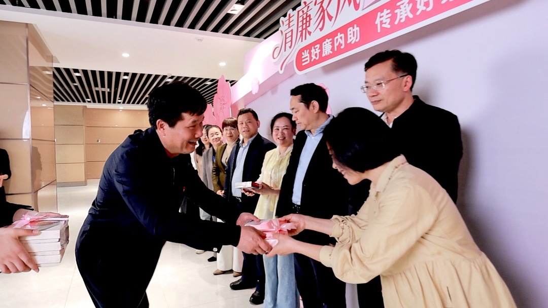 罗友明为干部职工及家属们赠送家风建设书籍,鼓励大家以书香润家风、以家教守底线。干部职工携家属一同在“清廉家风 幸福相伴”主题背景前合影,留存清廉印记,让家风建设更具仪式感与感染力。