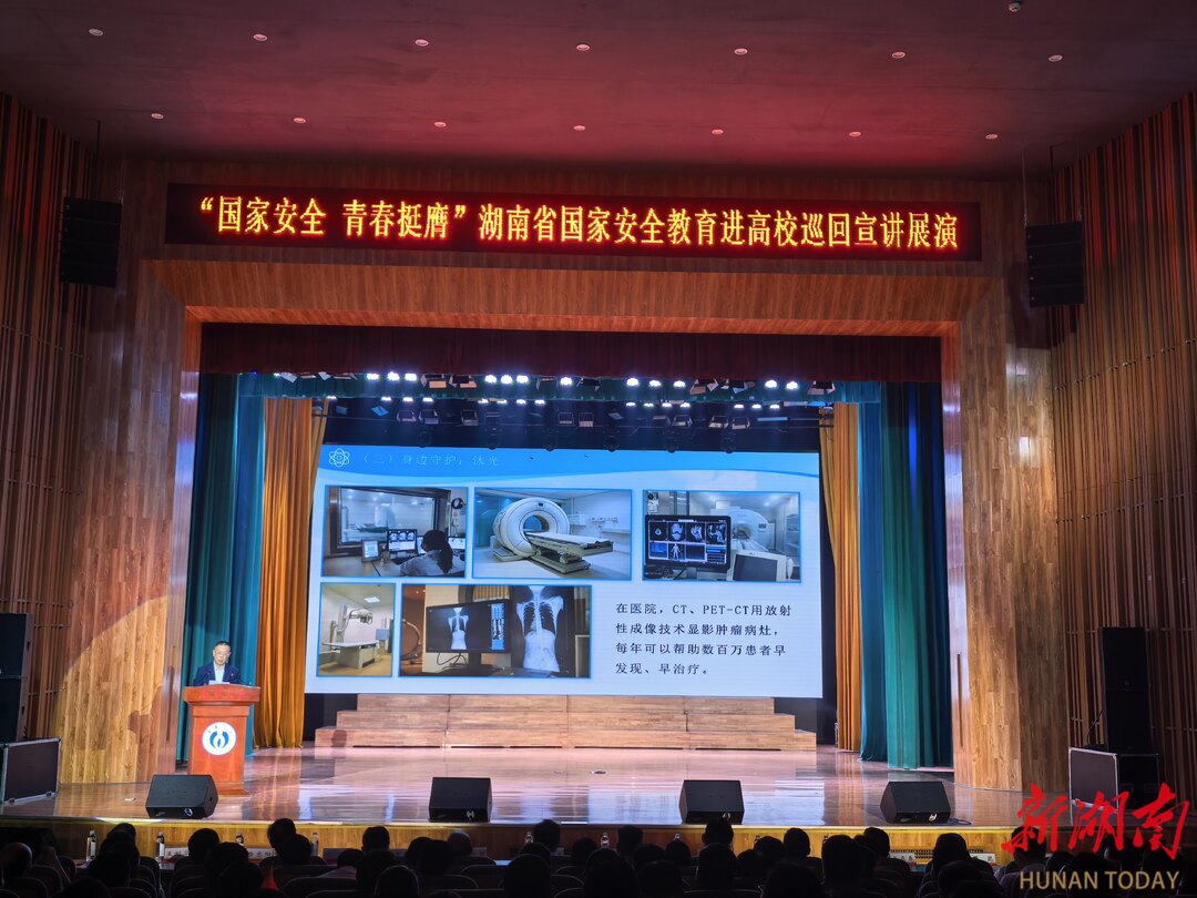 湖南日报·新湖南客户端4月9日讯(记者 周怡然 通讯员 夏文辉 伍资姿)在第11个全民国家安全教育日来临之际,4月9日,以“国家安全 青春挺膺”为主题的湖南省国家安全教育进高校巡回宣讲展演在南华大学礼堂举行。活动由省委国安办、省国家安全人民防线建设协调小组办公室、省委宣传部、省教育厅、团省委、衡阳市委国家安全委员会办公室共同主办,南华大学承办。