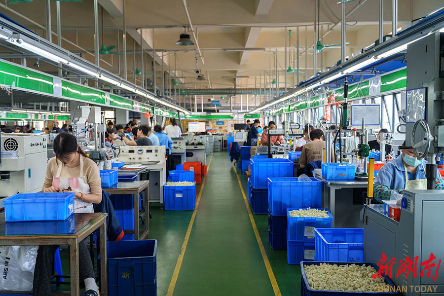 4月9日,永州市冷水滩区湖南省瑞柯电子科技有限公司生产车间,工人在赶制订单产品。 当前正值生产旺季,该区企业开足马力忙生产、赶订单,满足市场需求。雷中祥 蒋静 摄影报道(湖南图片库)