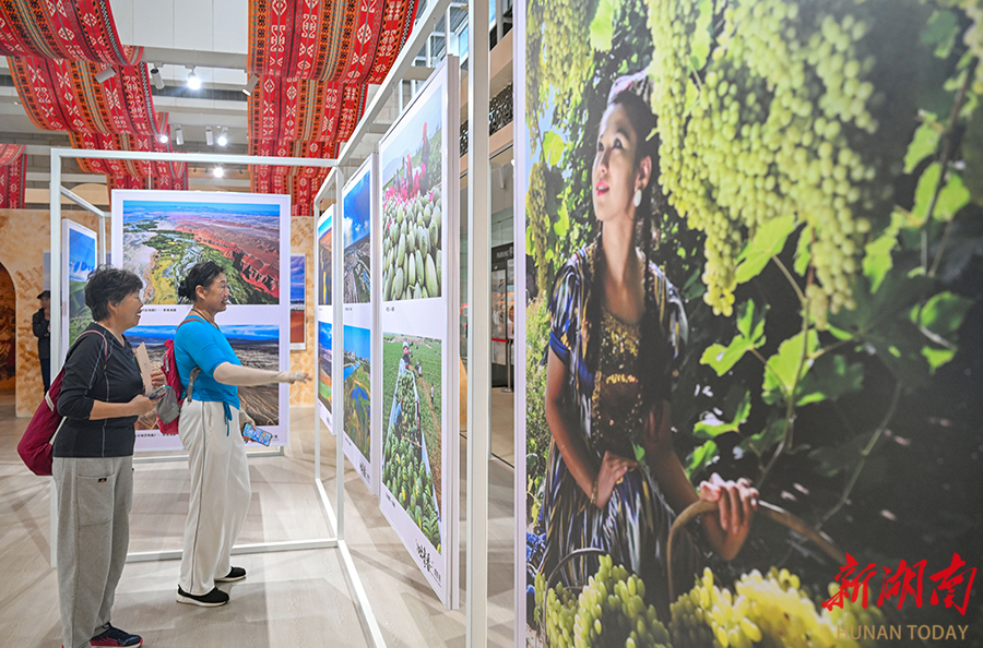 4月9日,市民和游客在观看摄影展。当天,“我的吐鲁番”摄影展在湖南省博物馆开幕。展览全方位展现了吐鲁番的风土人情、历史底蕴与时代风貌,深情讲述了湘吐两地二十八年的援疆情谊。展览还创新增设《我的吐鲁番》多媒体互动项目,为观众搭建起触摸“火洲”吐鲁番、读懂湘吐同心的视觉窗口。湖南日报全媒体记者 郭立亮 摄