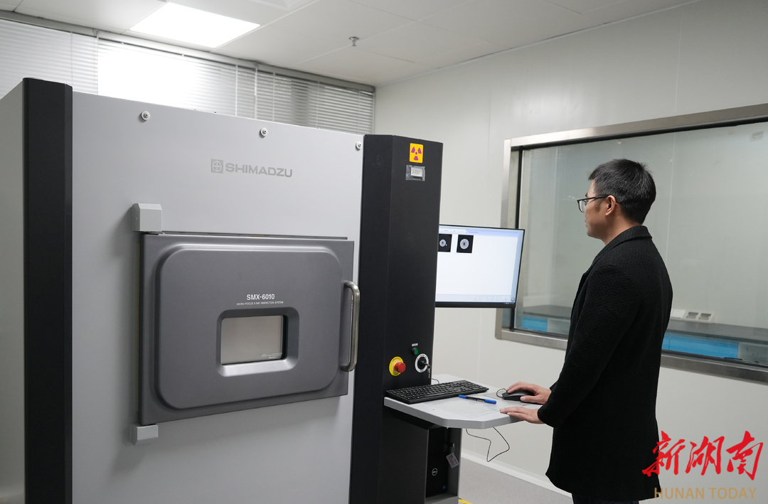 4月9日,湖南省电容器质量检验检测中心【国家电容器产品质量检验检测中心(筹)】实验室,一台工业CT机(微焦点透视装置)正在运转。
