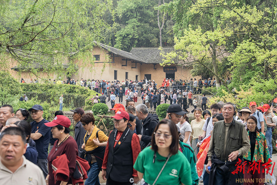 4月10日,韶山市毛泽东同志故居前人头攒动。春日里,韶山红色旅游持续火热,来自全国各地的游客在此瞻仰参观,于追寻红色足迹中重温光辉历史,汲取砥砺前行的精神力量。 湖南日报全媒体记者 李健 摄