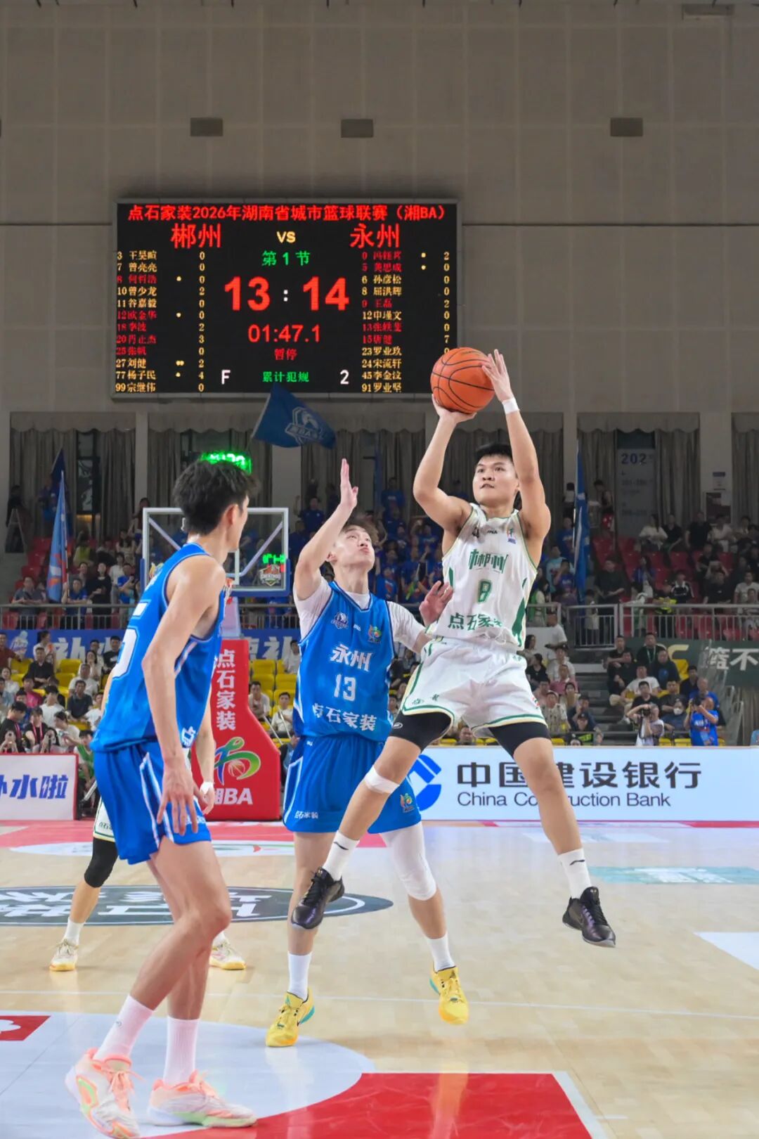 开场后双方迅速进入拉锯状态:首节永州率先拿到首分,双方攻防节奏极快,比分始终紧咬,永州凭借更高的进攻成功率在首节末尾实现反超,以18:15领先3分结束首节。