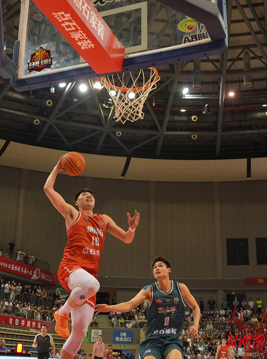 4月10日晚,衡阳队球员(红)与张家界队球员(绿)在篮下拼抢。当天,2026湖南省城市篮球联赛(“湘BA”)常规赛第三轮火热进行,衡阳队主场迎战张家界队。两队球员全力以赴,奉献了一场精彩的比赛,最终衡阳队以71:69的比分险胜张家界队,拿下本场比赛胜利。 曹正平 牟宪勇 摄影报道(湖南图片库)