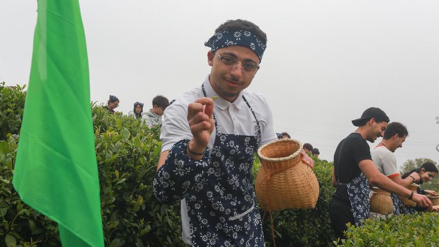 雨雾中的茶山翠色欲滴,金牡丹、金萱、梅占、黄观音等七个优质茶种迎来采摘高潮。参赛选手腰系竹篓,穿梭茶行,指尖轻捻,严格遵循“一芽一叶”或“一芽二叶”的采摘标准。“自己动手采茶才真正体会到劳动的不易,看似简单,实则讲究细心与耐心,这种‘匠人’精神让我收获很大。”数字商贸学院学生蒋苗说。来自摩洛哥的留学生穆安明首次参与采茶,他感叹:“雨水和茶香混在一起,感觉每一片叶子都在讲故事,太奇妙了。”茶园成为中外文化交流的生动课堂。