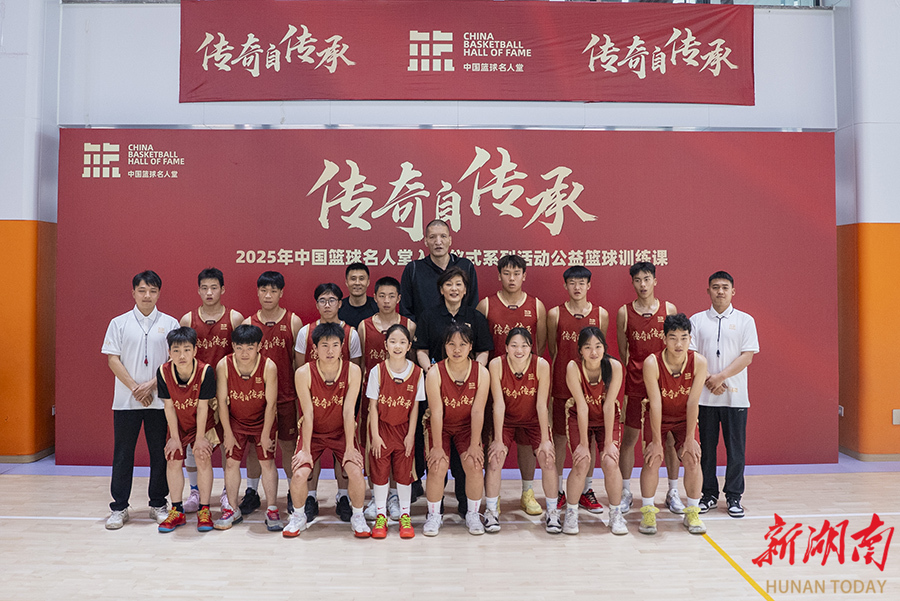 4月11日,桑植县职工文体中心,学员与篮球名宿合影留念。当天,2025中国篮球名人堂入堂仪式系列公益篮球训练课开课。王治郅、巴特尔、李昕等篮坛名宿现场指导青少年篮球技巧,通过专业示范助力基层篮球发展。该公益活动已连续两年举办,通过实际行动深耕基层篮球教育,持续为青少年篮球梦想赋能。 湖南日报全媒体记者 童臻熙 蔡矜宜 摄影报道