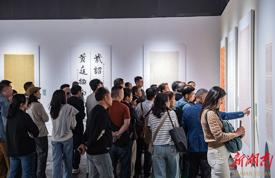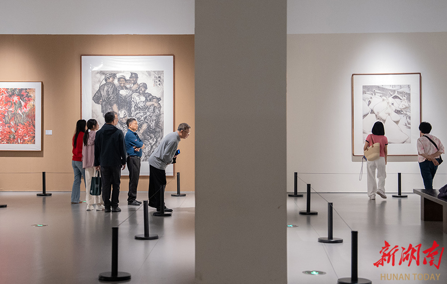 4月11日,湖南美术馆内,市民正沉浸在艺术作品前,静静品读。周末假期,各美术馆迎来参观热潮,众多市民走进展厅,在美的熏陶中滋养心灵。 湖南日报全媒体记者 李健 摄