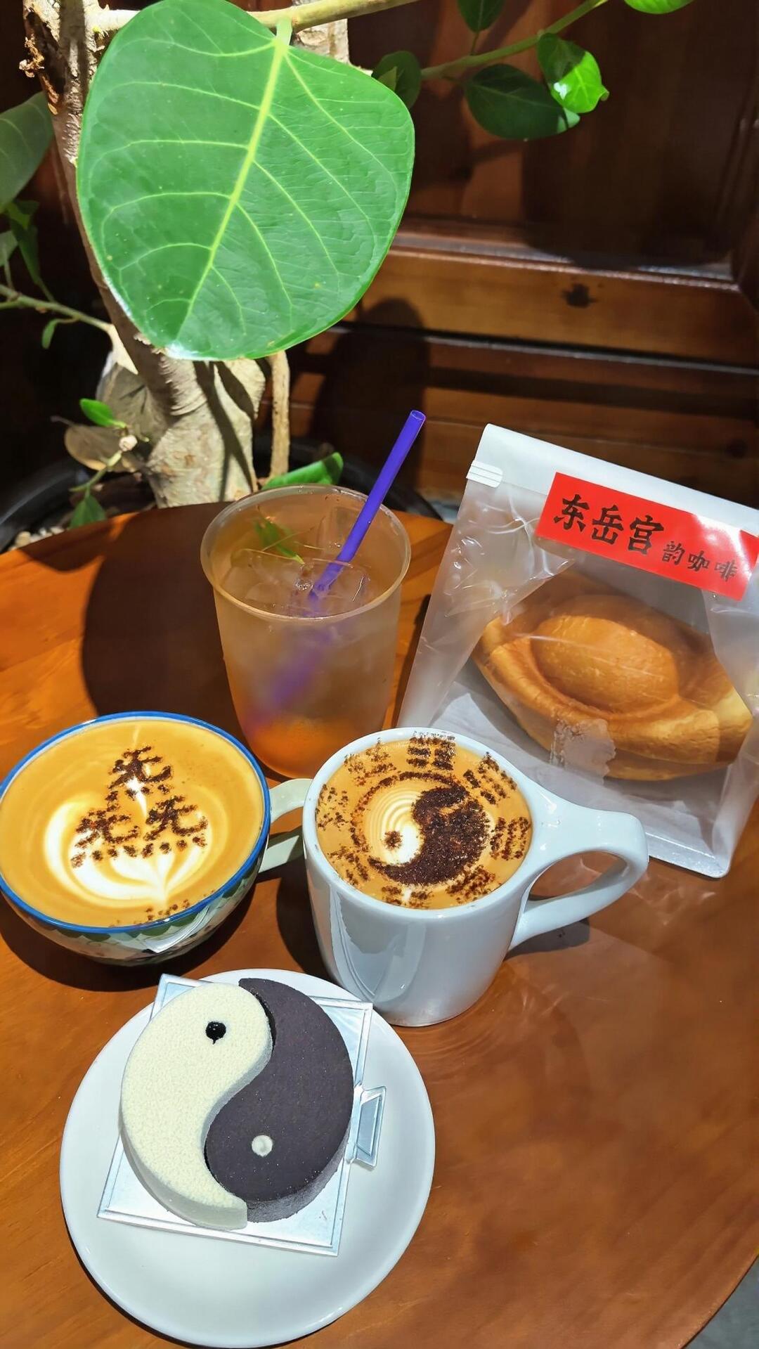 不止全国独有,2026年3月,武当山还推出了融入太极文化元素的3D打印咖啡,将“苦海”(美式)、“混沌”(拿铁)等道家概念融入命名;还有寺庙咖啡直接用僧人亲手书写的符纸包装饮品,每日限时限量出售。寺庙咖啡馆纷纷将传统符号转化为可传播的文化名片——而东岳宫走得更早,也更轻巧。