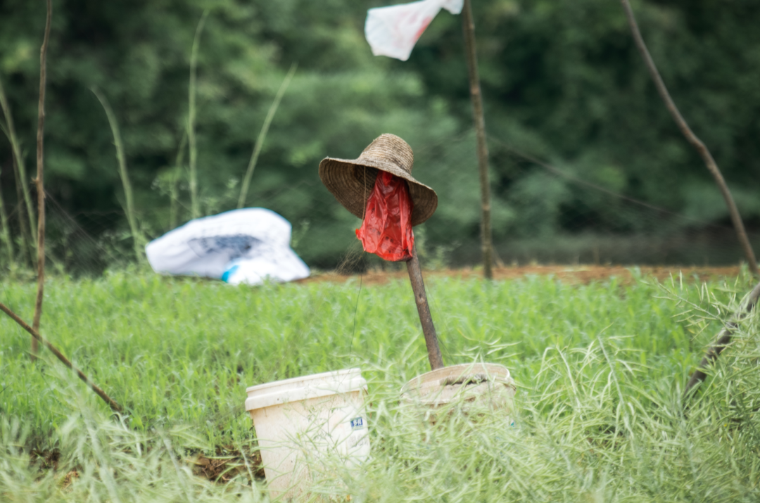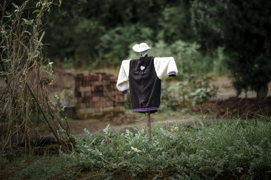 它可能只是路边几棵辣椒旁的一根杆子、一顶头盔,便郑重宣告着一片小小的“领地”;它也可能早已衣衫褴褛,却在绿野中站成一道固执的风景。
