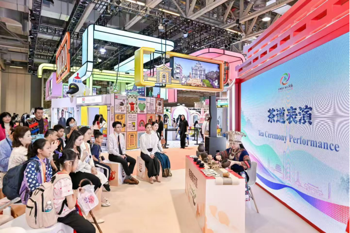 近日,由澳门特区政府旅游局举办的第14届澳门国际旅游(产业)博览会在澳门金光会展开幕,展会吸引了来自全球59个国家和地区超700多家的旅游相关企业及官方机构参展。郴州作为湖南对接粤港澳大湾区的前沿城市,核心以山水画卷·康养郴州”进行亮相。北湖区市级非遗项目“金仙寨传统煎茶技艺”作为亮点推至展会的非遗展示区域及内地舞台上展示技艺。