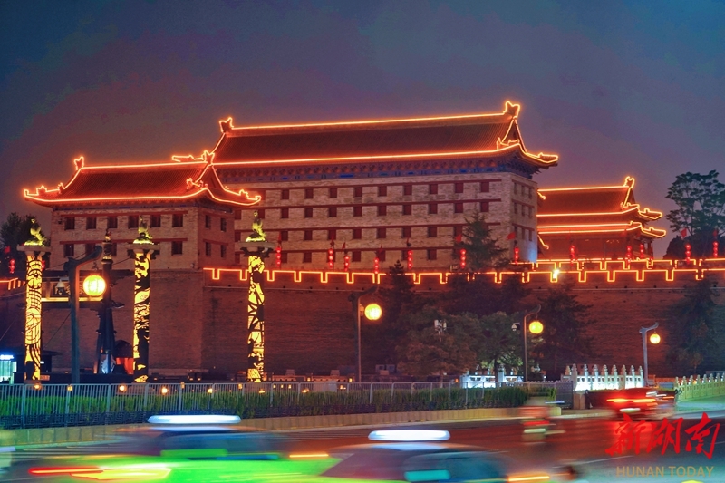 4月13日傍晚,陕西省西安市,游客在永宁门参观打卡。作为西安城墙的正南门,永宁门下穿砖砌拱形门洞,上立巍峨城门楼,外有瓮城、箭楼、闸楼层层拱卫,形制完备,气势恢宏。它是现存城墙中最古老、沿用历史最悠久的城门。湖南日报全媒体记者 徐行 摄