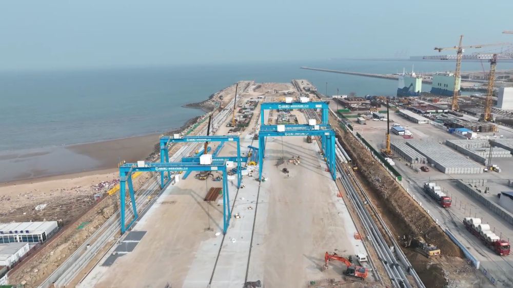 走进位于日照市岚山区的“山东港口装备集团高端海工装备制造基地项目”建设现场,工人们正推进主体结构施工,现场一派繁忙景象。