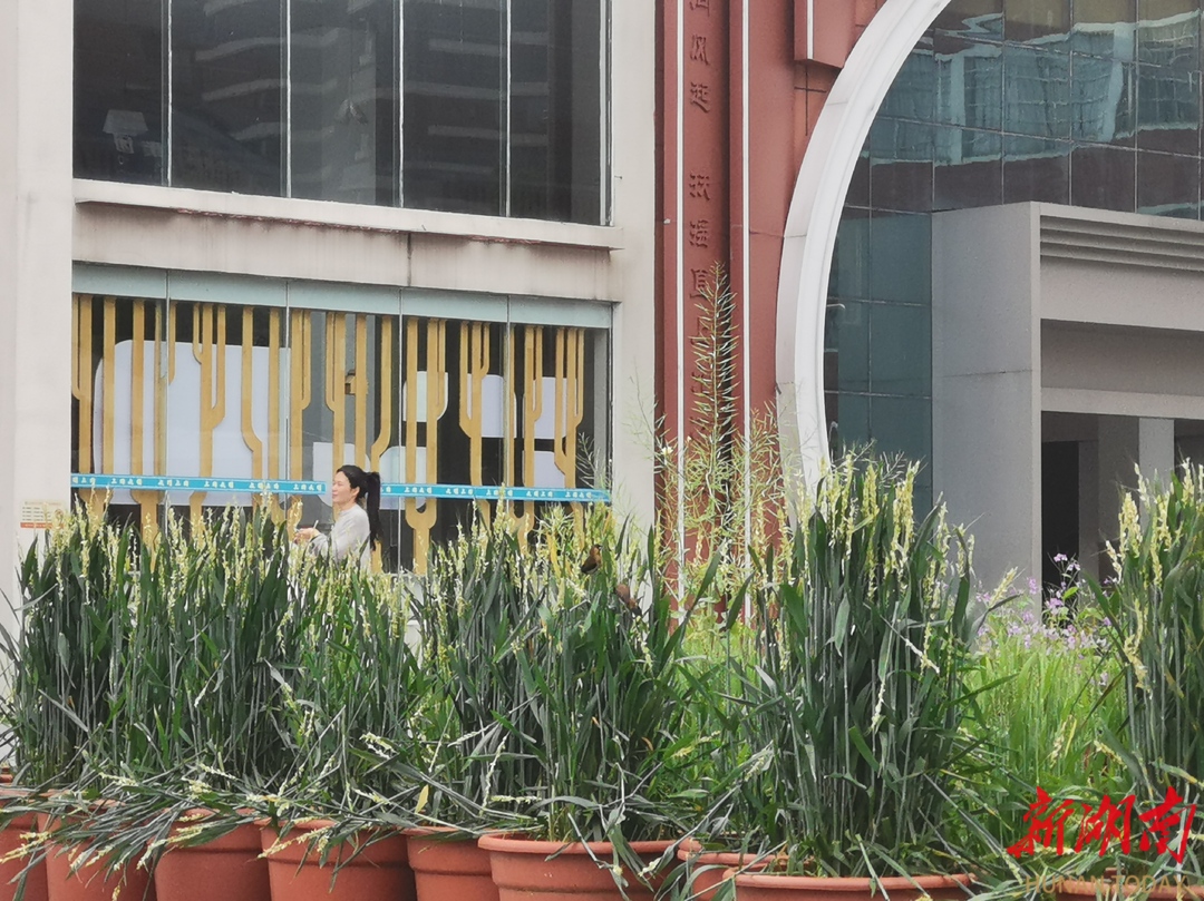 马年春天,岳阳市南湖新区金鹗小学小操场上,一排盆栽的小麦长得郁郁葱葱。