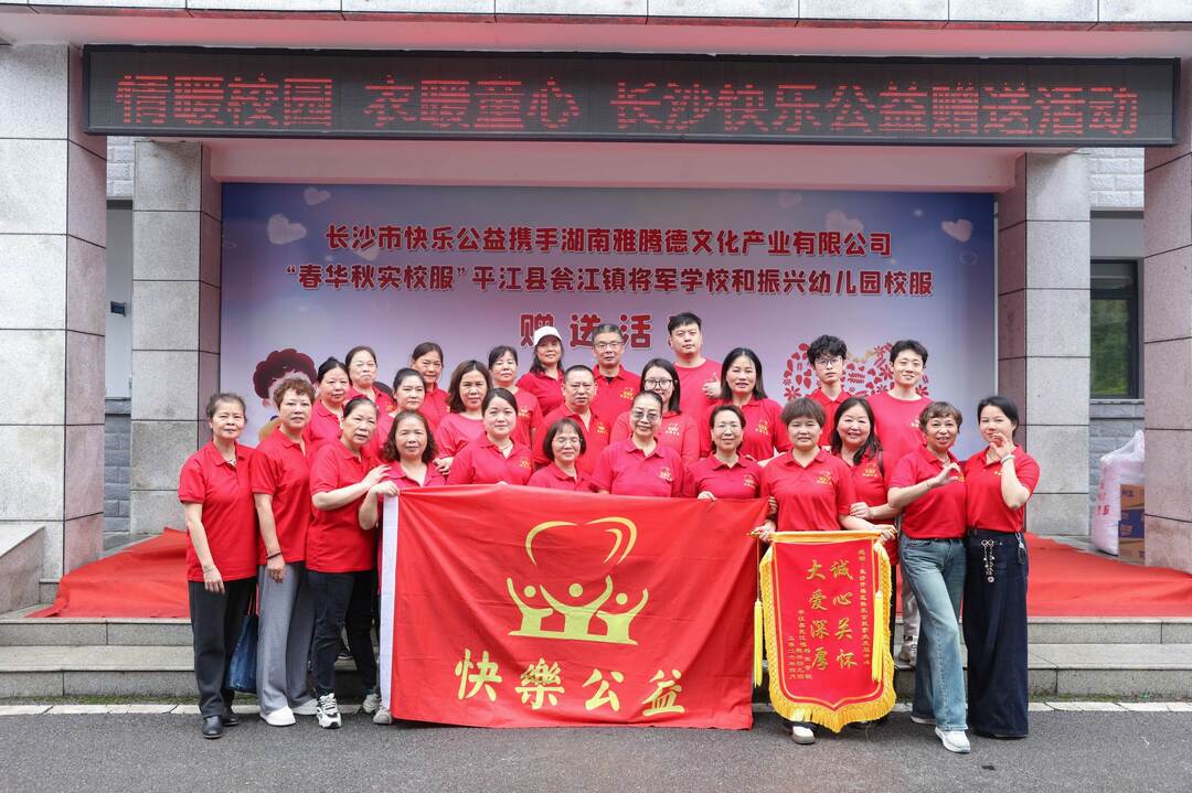 4月10日,长沙快乐公益事业发展中心联合湖南雅腾德文化产业有限公司,组织志愿者赶赴平江县瓮江镇将军学校与振兴幼儿园,为200余名学子捐赠定制校服与文体用品,以爱心善举温暖乡村校园。