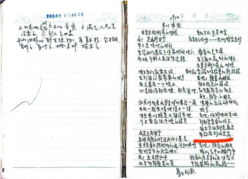1956年,金妍于地质学校培训班结业时所摘《毕业短歌》