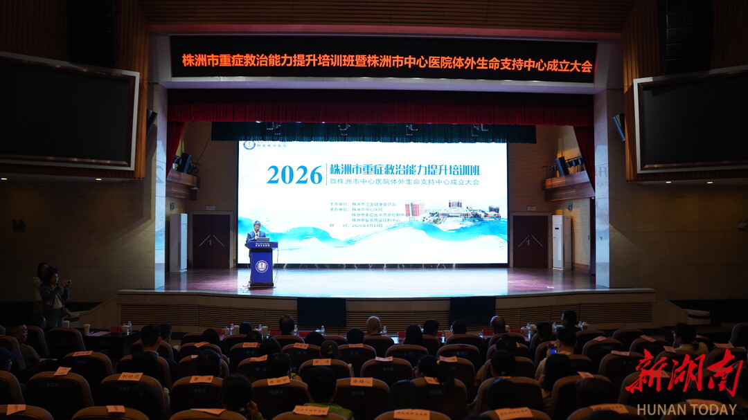 4月14日,株洲市中心医院体外生命支持(ECMO)中心成立。株洲市重症救治能力提升培训班同步开班。株洲市卫生健康委员会副主任、市疾控局局长谢文博主任出席,株洲市中心医院党委副书记、院长陈迅致辞并为ECMO中心授牌。株洲市中心医院副院长龙云铸主持。