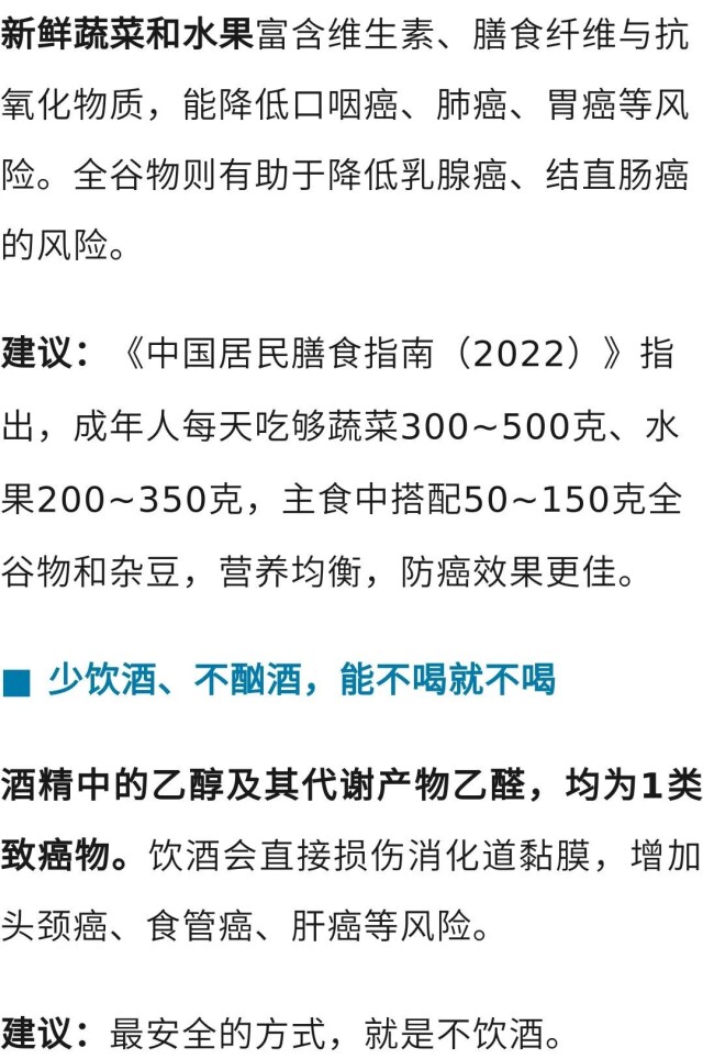 建议:每周至少进行150分钟中等强度运动(快走、慢跑、游泳、骑车)或75分钟高强度运动。同时,别小看日常活动:爬楼梯、走路通勤、做家务,都在帮你远离癌症。