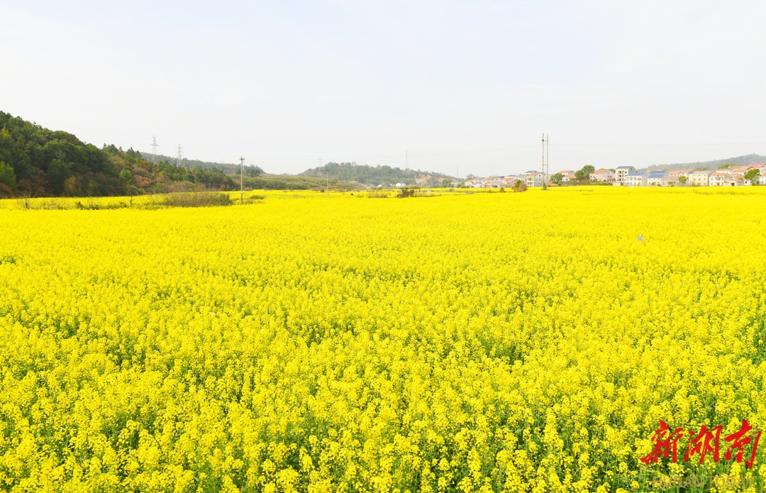 岳阳楼区郭镇乡麻布山下,油菜花开春意浓。