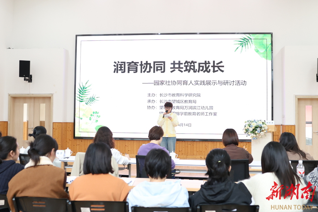 科教新报·新湖南客户端讯(通讯员 王馨仪)4月14日下午,“润育协同 共筑成长”——园家社协同育人实践展示与研讨活动在长沙市望城区教育局万润滨江幼儿园举办。本次活动由望城区周锦学前教育名师工作室、长沙市望城区教育局万润滨江幼儿园联合主办,聚焦“润”文化引领下的三方共育创新路径,集中展示实践成果、开展深度教研交流,为学前教育协同育人注入新动能。