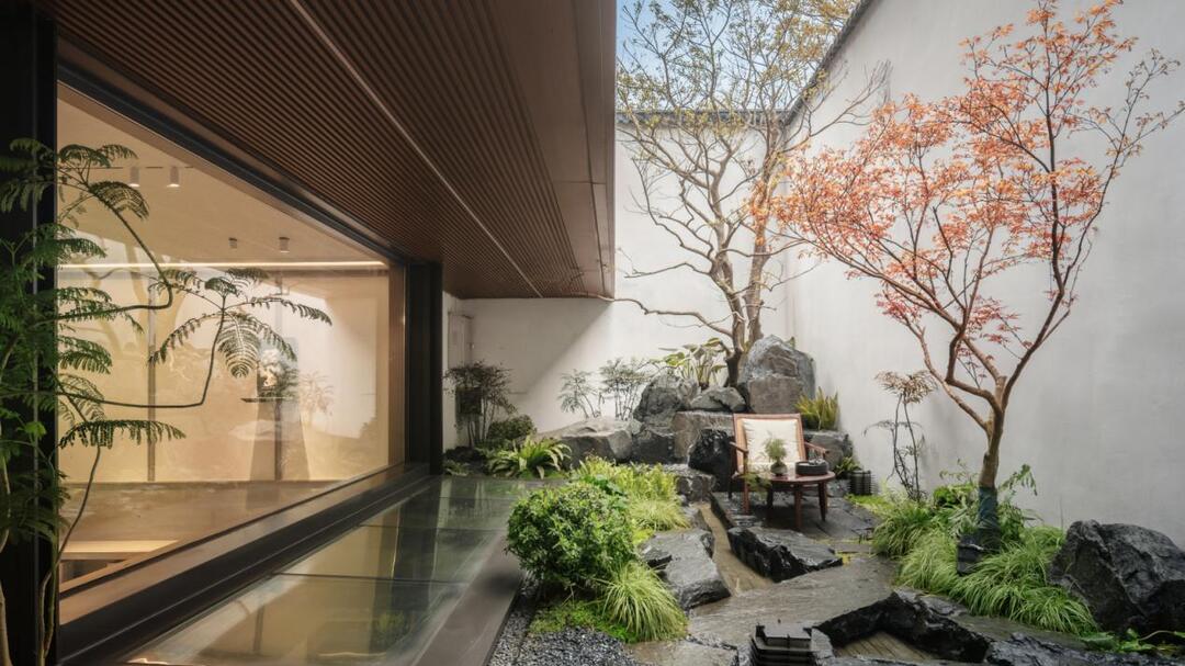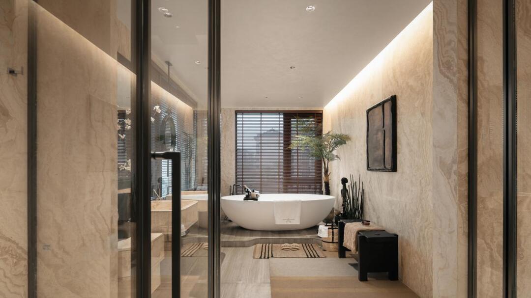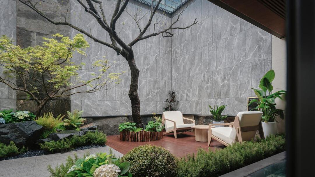 玄关之后便是西厨与中餐厅,餐厅与花园相连,室内外无界交融,平常可将餐桌搬至户外花园,宴客小聚或是午后围炉煮茶,让日常也充满诗意。