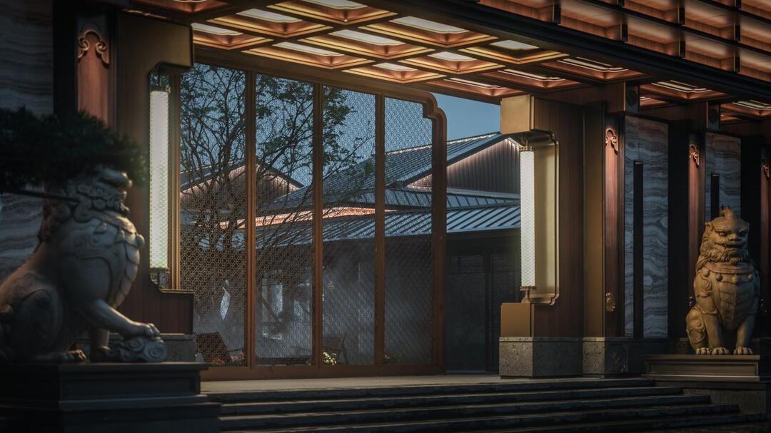 保利·天瑞取法故宫中轴对称,承袭王府前庭、中院、后园之格局,一轴入府、九礼归堂,将东方礼序融入归家动线。建筑语言上,博采唐、宋、明、清四朝精粹,盛唐风骨、宋式雅韵、明式工巧、清式园林,以四朝营造之法,重新演绎当代建筑语言,让千年东方美学在洋湖芯落地生根。