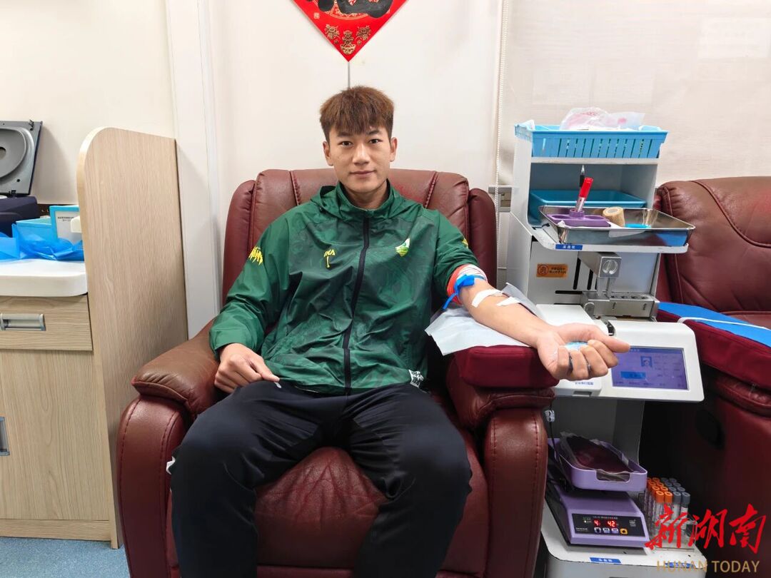 4月15日上午,湘超赛事郴州队主力门将刘翔,利用赛事休整时间,专程前往郴州市兴隆步行街献血屋参与无偿献血,用实际行动传递爱心、挽救生命,展现了新时代青年足球运动员的社会责任与担当。