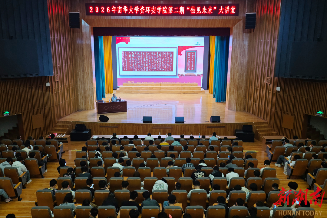 湖南日报·新湖南客户端4月15日讯(通讯员 杨宗烨 何家辉)近日,南华大学资源环境与安全工程学院2026年第二期“铀见未来”大讲堂在南华礼堂举行。湖南省政协委员、校工会常务副主席陈柒叁研究员作《从毛泽东诗词中汲取干事创业的力量》专题报告,带领700余名师生从伟人诗词中感悟初心使命、汲取奋进力量。
