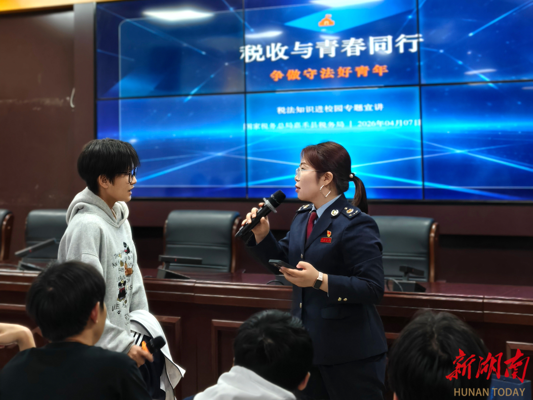 “同学们,你们知道桂嘉路改扩建、学校新教学楼建设,钱从哪儿来吗?”在嘉禾县第六中学,税务干部化身老师,用情景剧再现税收如何改变生活。抢答环节,学生们争相举手,气氛热烈。高二2415班学生李嘉勇课后兴奋地说:“税收和我们每个人息息相关,长大了我一定做依法纳税的好公民。”这场“税收与青春同行”活动,让法治种子在少年心中生根发芽。