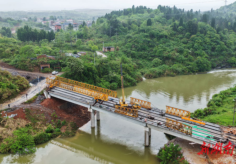 4月15日,嘉禾县普满乡,G234观音山中桥项目加紧施工。G234嘉禾段公路全线12公里,设计时速60公里,建成后将完善区域路网,促进农副产品流通,助推经济发展。 黄春涛 摄(湖南图片库)