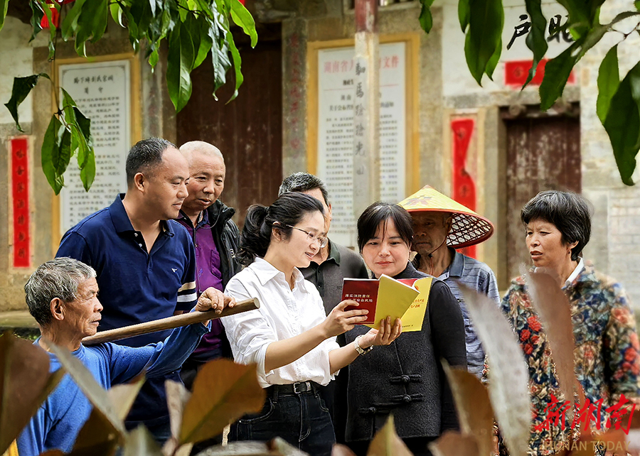 4月15日,嘉禾县普满乡刘和村,党员志愿者向村民宣传国家安全知识。当天是第十一个全民国家安全教育日。我省各地开展形式多样的主题宣传教育活动,提高人们的国家安全意识,共筑国家安全防线。 黄春涛 摄(湖南图片库)