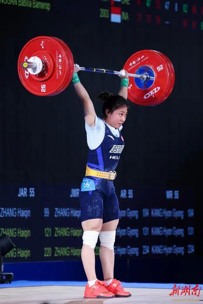 湖南日报·新湖南客户端4月16日讯( 通讯员 吴开准 全媒体记者 杨元崇)4月16日,从福建省福州市传来好消息,在4月15日结束的2026年全国女子举重锦标赛 53公斤级决赛中,由湘西土家族苗族自治州龙山县输送的运动员张海琴,代表湖南中联重科队,以抓举:96公斤,挺举:120公斤,总成绩:216公斤,夺得总成绩冠军。