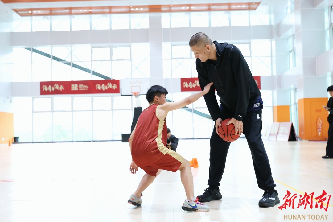 课堂结束,孩子们围在明星身边,抢着要签名、拍合影。来自桑植县十一学校的李梓骞踮起脚尖,递上自己的篮球。这个9岁的篮球少年,刚在这堂课上被评为MVP。