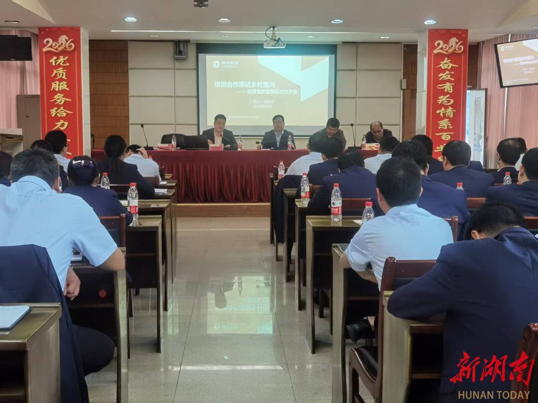 新湖南客户端4月15日讯(通讯员 高克群 石天河)4月15日下午,一场旨在深化银担协作、畅通金融支农渠道的政策宣讲会在双牌农商银行总部三楼大会议室热烈举行。永州市农担公司副总经理蒋如龙率项目经理刘森林等业务骨干,会同双牌县财政局农信担服务中心相关工作人员,与双牌农商银行总行各部门领导、辖内各支行行长及一线信贷员齐聚一堂,共同为“乡村振兴产业贷”等惠农政策精准落地蓄势赋能。