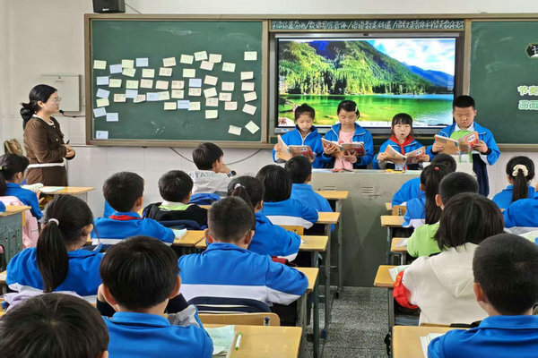 谢正琳老师的《绿》则充满创意。她带着孩子们用手打节拍感受韵律,在空中画旋律线表现诗句的起伏,还让学生把朗读中体会到的情感写在词卡上贴在黑板上。课堂上,孩子们放声诵读,书声琅琅。
