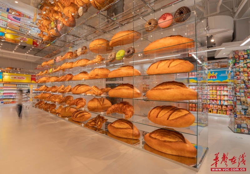 在空间布置上,除“水饮小镇”“糖果森林”“辣条秘境”“零食博物馆”“零食周边”“零食有礼”“零食很大”等主题区外,还设置了多处出片型打卡点位,包括饮料区巨型瓶装置与玻璃地台、棒棒糖墙、糖果管道、巨无霸购物车、巨型面包墙等。