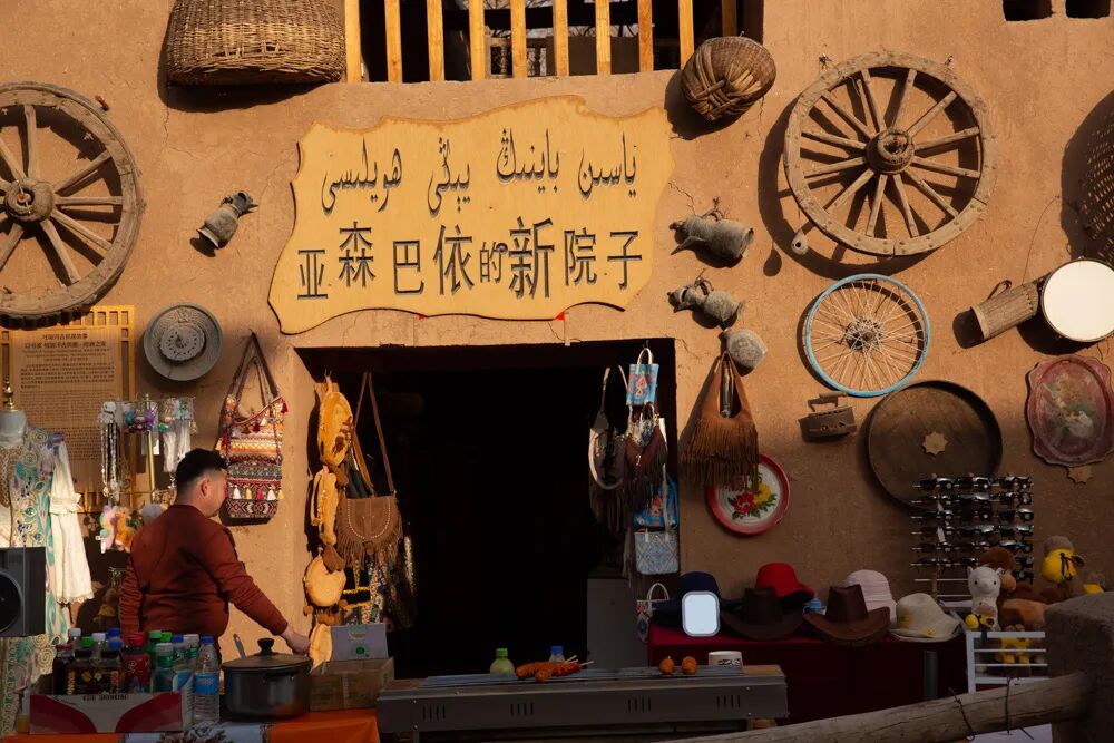 村落深处,“亚森巴依的新院子”挂满花帽、旧物与生活。那不是精心布置的展览,而是家自然而然长成的模样——热烈、饱满,带着烟火的温度。