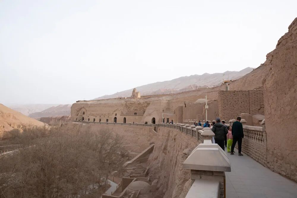 当你终于站在观景台上,看旅人往来,背后是隐约的洞窟与赭红山体——那一刻,人既像闯入者,也像归来者。