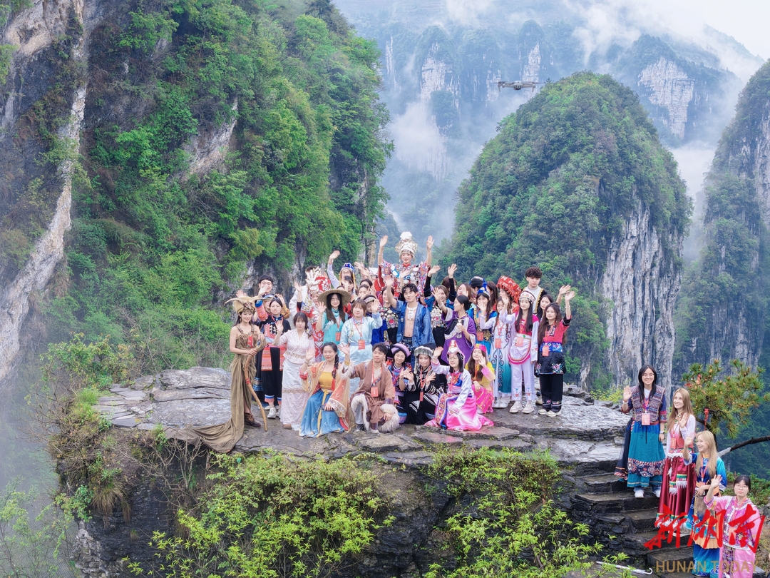 活动当日,景区打造沉浸式体验场景,串联天问台、矮寨大桥等核心景点。在海拔400米的苗族祈福圣地天问台,15名苗家阿妹身着盛装开展高山流水互动,达人们身着本民族服饰环绕合影,定格民族团结震撼瞬间。