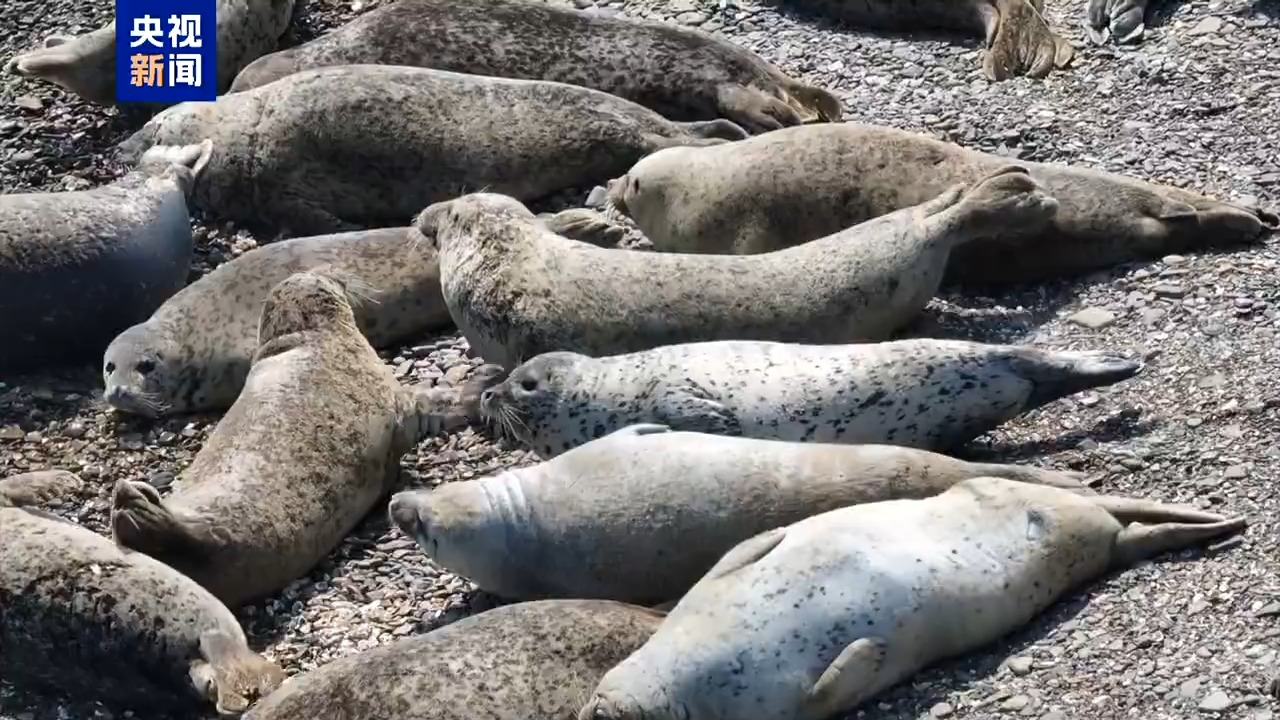 在位于渤海海域的大连斑海豹国家级自然保护区内,科研团队用无人机开展多点位连续检测,数次清晰地看到海中不同浅滩上有大量斑海豹趴在沙洲上沐浴着温暖的阳光,数量平均在数十头。