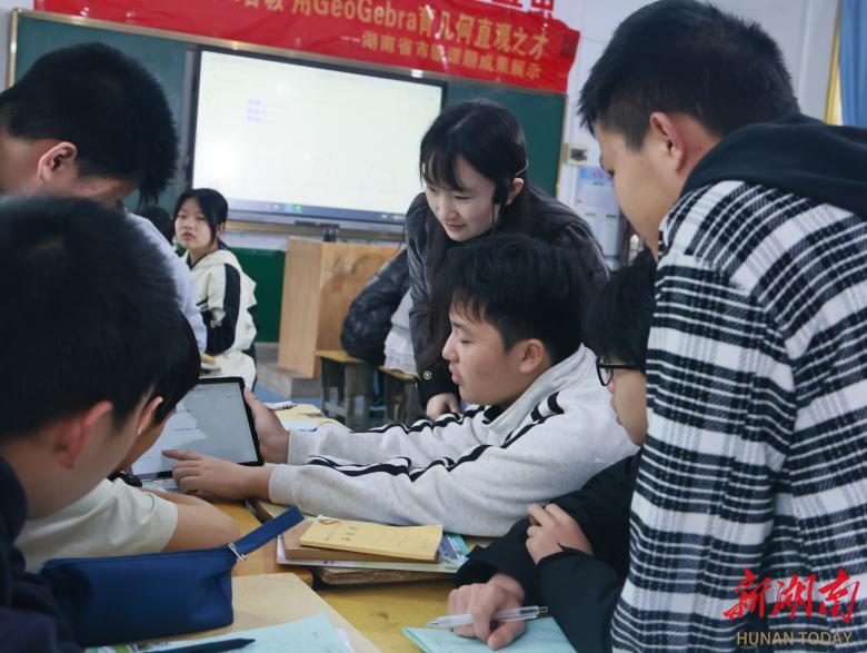 新湖南客户端4月16日讯(通讯员 刘娜 刘耀春 赵梅 王玖华)为充分发挥省级课题《核心素养导向下利用GeoGebra发展初中生几何直观能力的实践与研究》的前期成果,4月15日,九名课题组成员在双峰县第四中学首次开展关于“利用AI+GeoGebra优化农村几何教学”教研活动。本次活动旨在架设理论与实践的桥梁,让教学有“理”可依,让理论有“路”可行。