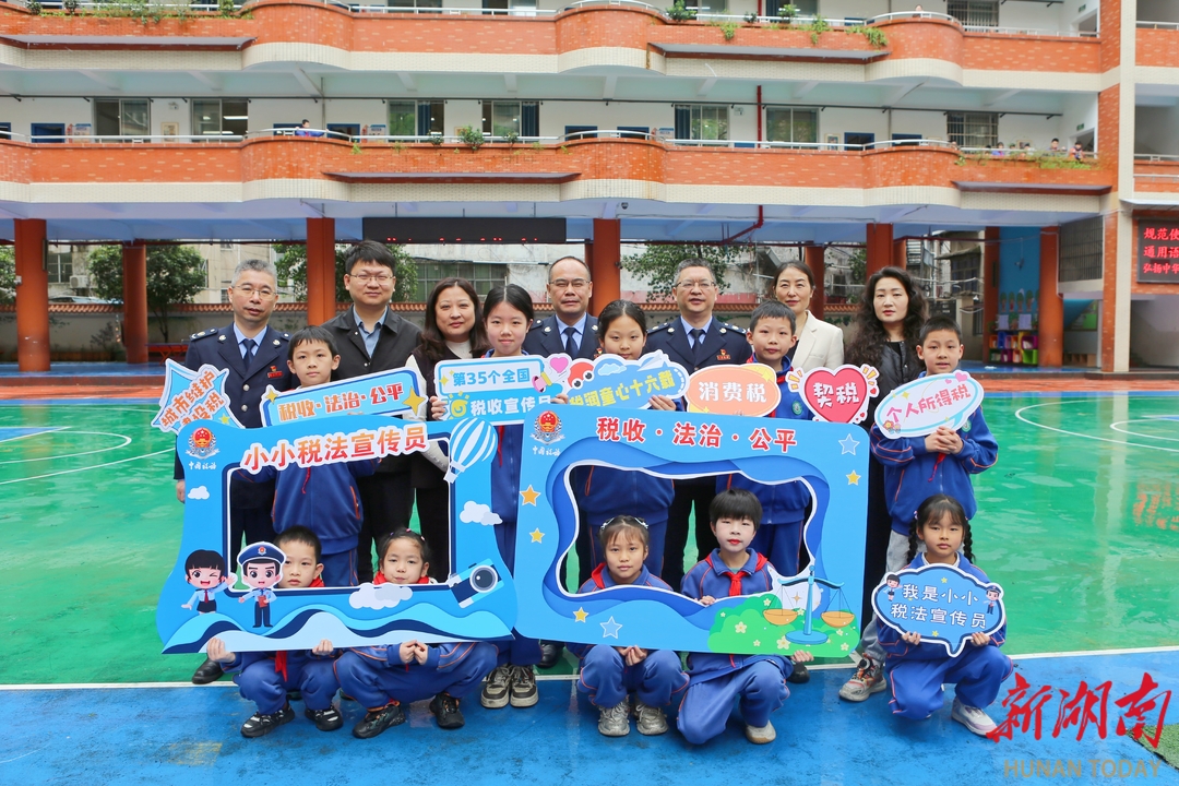 湖南日报·新湖南客户端4月16日讯(通讯员彭辰瑜 李雅晴 陈磊)梧桐新绿,书声琅琅。4月16日,正值第35个全国税收宣传月期间,国家税务总局株洲市芦淞区税务局税务干部走进株洲市芦淞区栗树山小学,如期开展“税法进校园”主题普法活动。