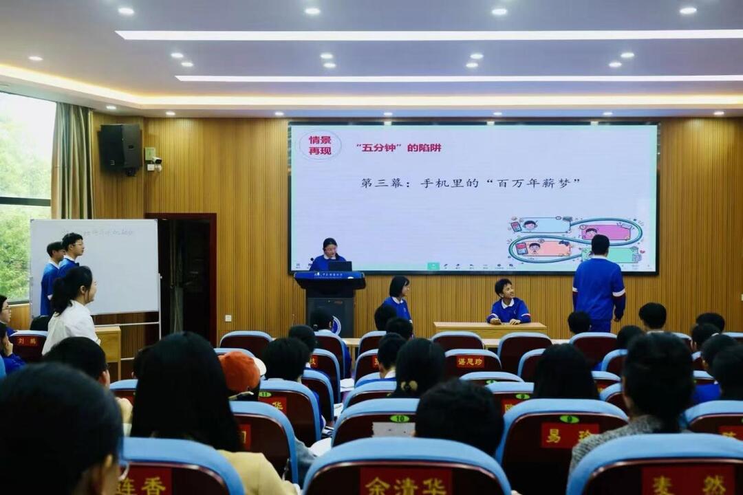 如何引导学生与手机“和平共处”?湖南省徐卫平名班主任工作室成员、雅礼中南附属中学教师彭婧妮带来了一堂生动的示范课——《我和手机如何相处》。课堂上,学生们通过沉浸式情景剧还原日常“手机拉锯战”,在老师的引导下揭开多巴胺成瘾机制的神秘面纱。从“被动使用者”到“主动管理者”,彭婧妮用层层递进的问题链,帮助学生在思辨中建立健康的媒介使用观。不少听课老师感慨:“这才是学生需要的班会课!”
