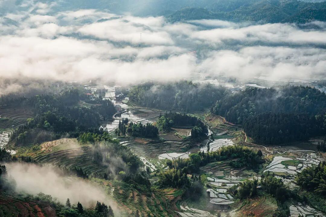 在这个季节,山间云海漫过梯田,江畔碧水倒映繁花,从田间耕作的身影到古城绽放的春樱,每一处风景都在诉说着生长的故事。