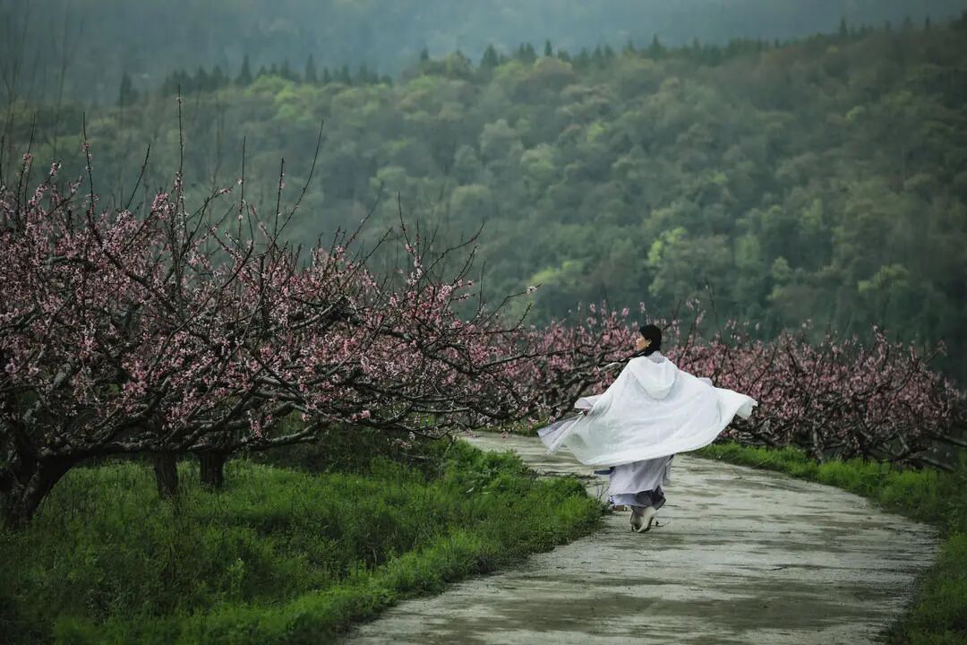 烟雨桃林 | 烟雨朦胧中,永州中联村的桃林基地里,游人漫步花间,平添一份悠远的诗意意境。